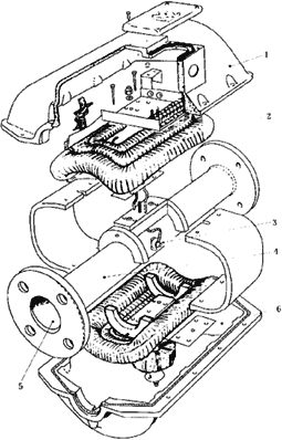 圖3所示為工業(yè)電磁流量計(jì)一次裝置的展開圖。線圈和磁軛裝配產(chǎn)生一磁場,測量管是一種非磁性材料,例如塑料、陶瓷、鋁、黃銅,或者非磁性不銹鋼。金屬測量管內(nèi)襯有一個(gè)絕緣襯里,防止金屬管把電極信號(hào)短路。襯里可以是玻璃、合成橡膠、塑料和陶瓷等(見附錄a)。襯里和電極材料的選擇,要使之適合于被測液體。