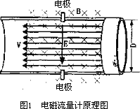 流體的體積流量Q與流速V和管道內(nèi)截面成正比,只要測量出兩電極之間的電動勢E,即可確定流量Q。