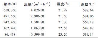 (2)系數(shù)。儀表系數(shù)K是指單位體積的流體通過(guò)流量計(jì)發(fā)出的脈沖數(shù),單位為L(zhǎng)-1,計(jì)算公式如下:
