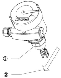 安裝音叉液位開關(guān)時(shí),應(yīng)使叉體面和液體升降或流動保持方向一致,可以避免掛料或由于介質(zhì)對叉體的阻力而產(chǎn)生的測量誤差,如圖1(a)(b)所示。