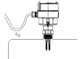 當(dāng)儀表安裝在戶外或有潮氣的環(huán)境中,如遇到下雨或村在冷凝現(xiàn)象時(shí),雨水和冷凝水便會隨之往下流,所以在接入電纜之前,請將電纜線彎曲并朝下引,以防止水或潮氣進(jìn)入儀表,如圖3所示。